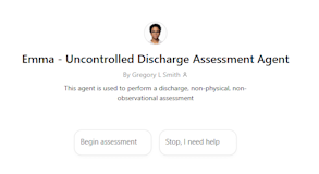 Agentic AI agent that performs the non-physical, non-observational assessment at the discharge point of a hospitalization.